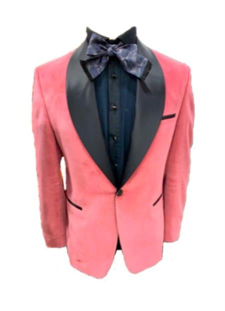 View full detailsMake a bold and stylish statement with this Men's Slim Fit Pink Tuxedo Suit featuring elegant black trim detailing. Tailored for a sharp silhouette...
