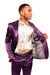 Mens Two Buttons Peak Lapel Slim- Fit Suit Purple Shiny Suit