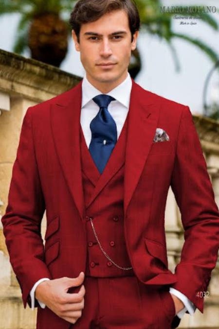 View full details1 Button Single Breasted Peak Lapel Ticket Pocket One Chest Pocket Two Flap Front Pockets Color: Red SKU#JA53906
