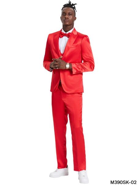 View full detailsRed Tuxedo Two Button Single Breasted Shawl Lapel One Chest Pocket Flap Front Pockets Style: Smart Casual Front Style: Flat Vent: Back Vent Pant Cl...