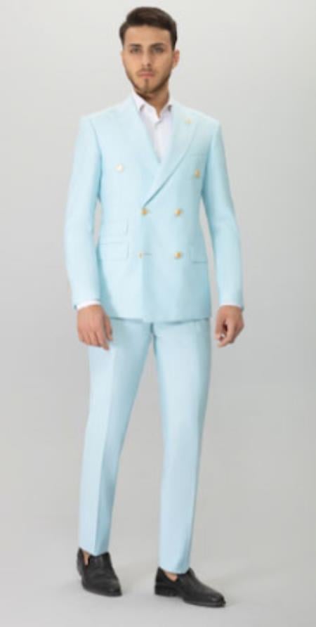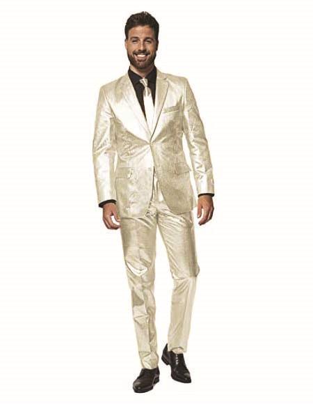 View full detailsTwo Button Single Breasted Peak Lapel One Chest Pocket Two Flap Front Pockets Flat Front Pants Half Lined Pants Color: White and Gold ~ Yellow SKU#...