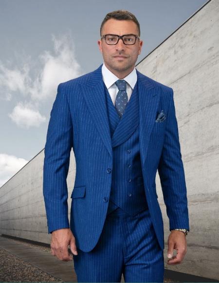 View full details2 Button Notch lapel One Chest Pocket Flap Front Pockets Modern Fit 2 Piece Suit Color: Royal SKU#JA56538