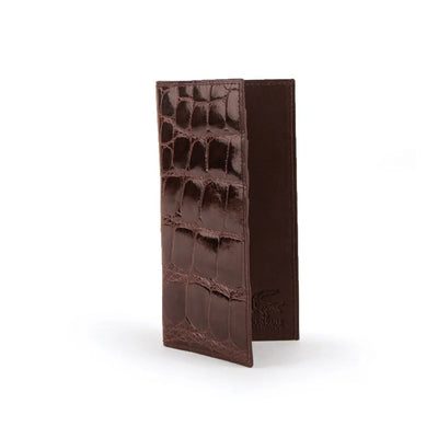 Dimension (Inches) Length - 3 9/16, Height - 6 5/8 Open Length 7 1/16 Color: Nicotine Material: Alligator