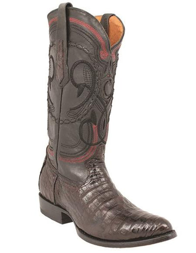 R Toe Cowboy Boots - Round Toe Cowboy Boots - Los Altos Mens Caiman Belly Western Boots Round Toe 6582 Color: Brown