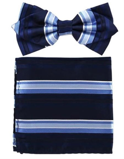 Bowtie Hand Made Imported Color: Navy and Sky Stripe
