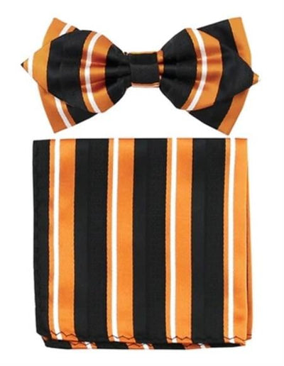 Bowtie Pre-Tied Comes with Matching Hanky Hand Made Silk Imported Color: Orange Stripe