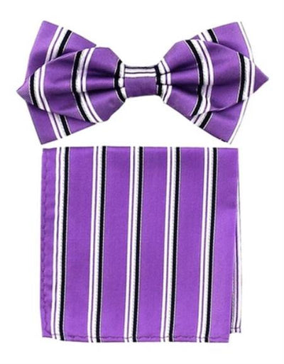 Bowtie Pre-Tied Comes with Matching Hanky Hand Made Silk Imported Color: Purple Stripe