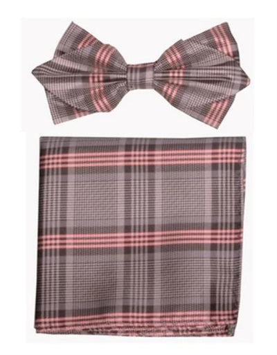 Bowtie Pre-Tied Comes with Matching Hanky Hand Made Silk Imported Color: Mocha Plaid