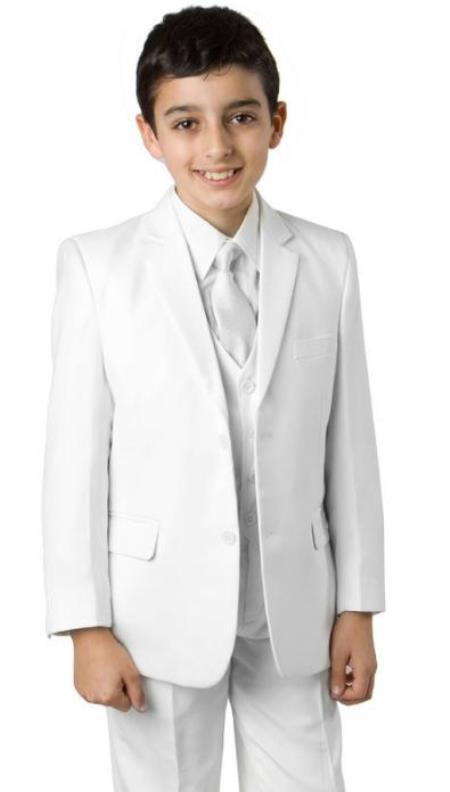 Designer Boys Suit - Designer Kids White Suit Jacket Lapels: Notch Buttons: 2 Material: Poly/Rayon/Spandex Blend Pattern: Solid Fit & Sizes: Ki...