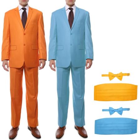 SUIT 1: Premium FE28001 Regular Fit Suit in Orange SUIT 2: Premium FE28001 Regular Fit Suit in Sky Blue OTHER: ORANGE & BLUE TOP HATS, CANES Co...