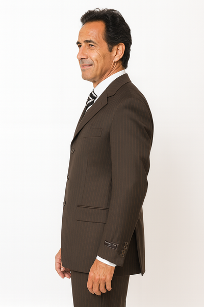 View full detailsProduct Description: Command attention with timeless style in this Men’s Brown Pinstripe 3-Piece Suit, crafted for distinguished gentlemen who valu...