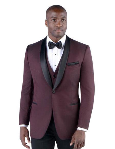1 Button Suit Shawl Lapel One Chest Pocket Flap Front Pockets Slim Fit Color: Burgundy ~ Maroon SKU#JS317