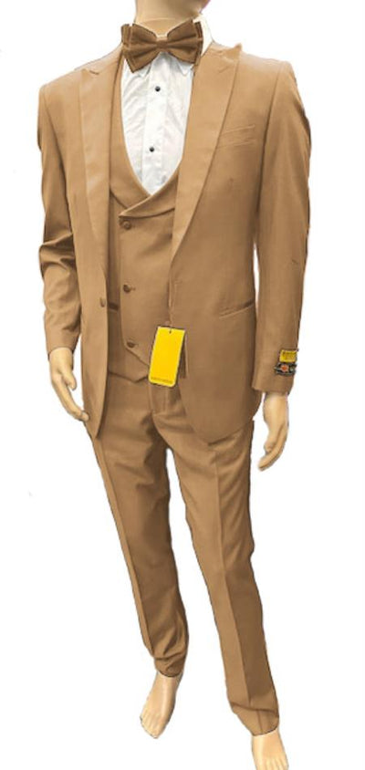 Classic Fit Suit Camel Suit Khaki Suit Vested Suit Statement Suit 1 Button Suits Suits with Double Breasted Vest 2 Button Suit Color: Tan Khaki