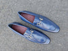 Carrucci Leather Sole Horsebit Loafer features first grain calfskin upper with shiny silver tone horsebit buckle, leather footbed and a leather sole. SKU: Magnanni
