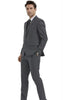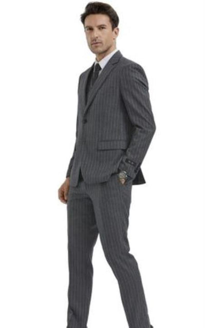 2 Button Single Breasted Notch Lapel Pinstripe Pattern Slim Fit Suits Flat Front Pant Double Vent One Chest Pocket Two Flap Front Pockets Color: Gr...