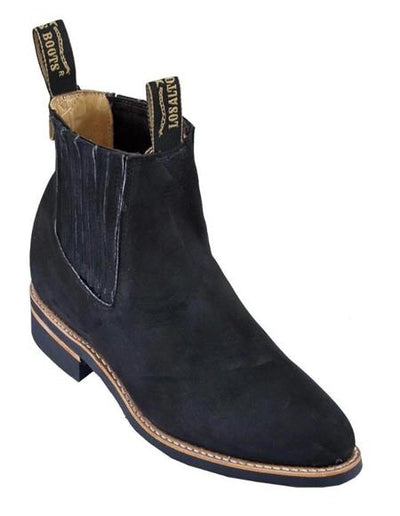 Genuine Suede Charro Leather Short Boots Welt Stitch Material: Charro Leather Color: Black SKU#SM3182