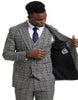 Statement Suits Wool Suits Peak Lapel Suits Ticket Pocket Modern Fit Suit Grey Plaid Suit
