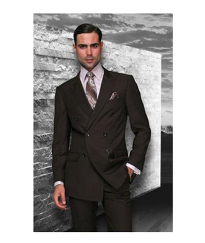 "EJ Samuel Mens Brown Modern Peak Lapel Suit with Vested Double Breasted Vest"