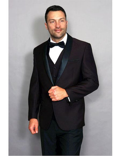 1 Button Single Breasted Black Shawl Lapel One Chest Pocket Front Flap Pockets Side Vents Flat Front Pants Material : Poly rayon super 150's Color:...