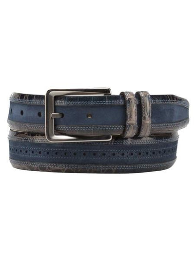 Nickle Gloss Buckle Hi-Quality Full Nubuck Backing Handmade In Spain Material: Genuine Crocodile / Suede Color: Blue / Camel SKU#JA318