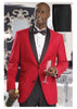View full detailsBlack Pants One Button Red Shawl Collar Side Vents