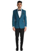 Buttons Closure Single Breasted Shawl Lapel One Chest Pocket Front Besom Pockets Solid Pattern Color : Teal Blue SKU#Velvet-Tux101