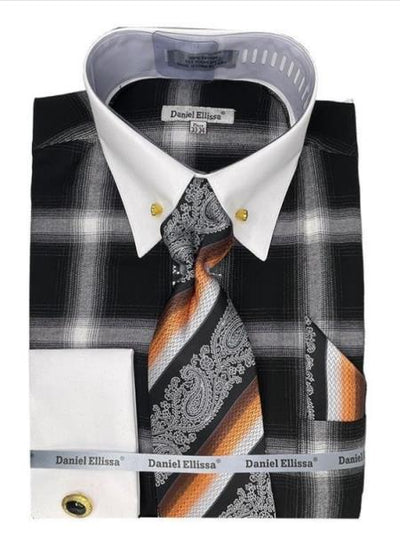 View full detailsDaniel Ellissa Men's Outlet French Cuff Shirt Set - Gradient Windowpane Soft Two Tone Windowpane Design French Cuff Dress Shirt Tie Hanky Cuff Link...