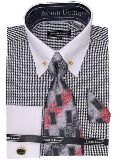 View full detailsAvanti Uomo Men's French Cuff Dress Shirt Set - Triple Tone Print Triple Tone Print French Cuff Dress Shirt Tie Hanky Cuff Links Collar Bar 60% Cot...