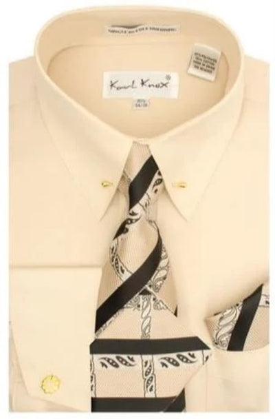 Karl Knox Men's French Cuff Shirt Set - Two Tone Tie Two Tone Tie French Cuff Dress Shirt Tie Hanky Cuff Links 65% Polyester 35% Cotton Color: Yellow