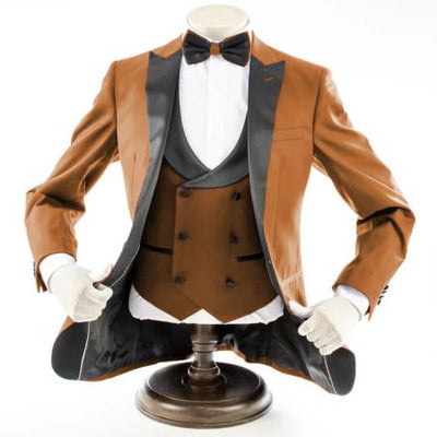 Rayon Blend Fabric Slim-Fit Peak Lapel 3 Interior Pockets Dual Vents Bow-Tie Included Color: Brown