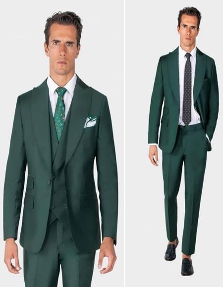 1 Button Single Breasted Peak Lapel Ticket Pocket One Chest Pocket Two Flap Front Pockets Color: Olive Dark Green SKU#JA53920