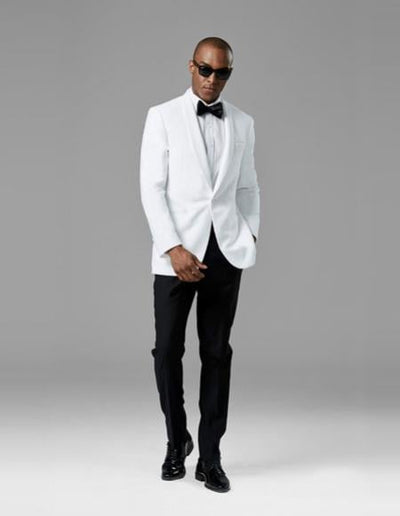 One Button Single Breasted Shawl Lapel One Chest Pocket Front Besom Pockets Black Flat Front Pants Double Vents Color : White SKU#CH2396