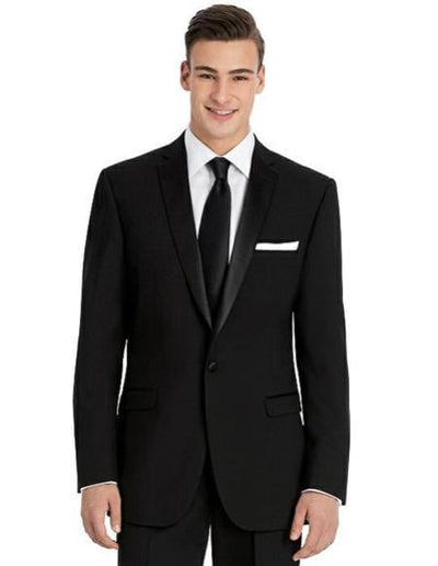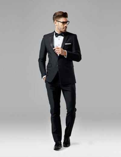 Two Buttons Single Breasted Satin Notch Lapel One Chest Pocket Front Flap Pockets Flat Front Pants Double Vents Color : Black SKU#CH2385