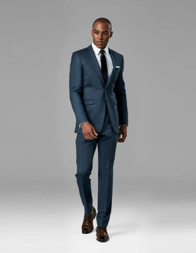 Two Buttons Single Breasted Notch Lapel One Chest Pocket Front Flap Pockets Flat Front Pants Double Vents Color : Slate Blue SKU#CH2387