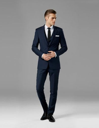 Two Buttons Single Breasted Trimmed Notch Lapel One Chest Pocket Front Flap Pockets Flat Front Pants Double Vents Color : Navy SKU#CH2380