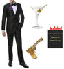 TUX: Oxford Black Sharkskin Slim Fit Suit POCKET SQUARE: Pre-folded Microfiber Red Handkerchief Pocket Square OTHER: Golden gun, martini glass Colo...