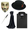 View full detailsHAT: Black Wool Pork Pie Hat SHIRT: Virgo Regular Fit Dress Shirt in Black OTHER: V for Vendetta Mask, fake knives, black cape Color: Black