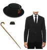 BLAZER: Modena Black Knit Slim Fit Blazer HAT: Black Wool Pork Pie Hat OTHER: Cane, mustache Color: Black