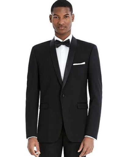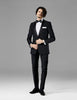One Button Single Breasted Satin Peak Lapel One Chest Pocket Front Besom Pockets Flat Front Pants Double Vents Color : Black SKU#CH2375
