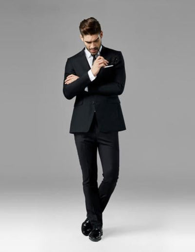 Two Buttons Single Breasted Notch Lapel One Chest Pocket Front Flap Pockets Flat Front Pants Double Vents Color : Black SKU#CH2376