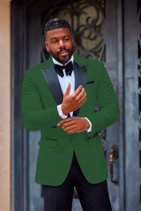 View full detailsThis designer wool fashion suit features a 1 button closure, wide peak lapel, double breasted green vest, and matching pants, in a hunter green wi...