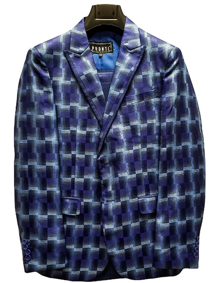 1 Button Notch Lapel One Chest Pocket Flap Front Pockets Slim Fit Color: Royal Blue SKU#SM2716