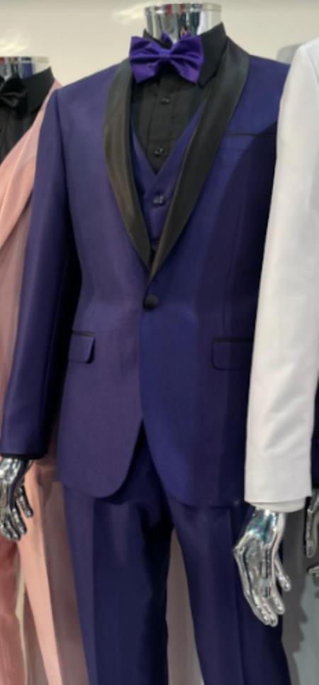 View full detailsTwo Buttons Single Breasted Peak Lapel Besom Chest Pocket Front Flap Pockets Two Inside Pockets Flat Front Pants Color : Blue SKU#CH1896