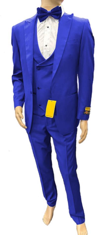 High Quality Royal Blue Double Breasted Suit Blazer with Peak Lapels Dress with this delightful suit pictured in royal blue for an appealing fin...