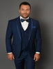 One Button Single Breasted Peak Label Flap Two Pockets Ticket Pocket One Chest Pocket Color: Blue SKU#JA1445