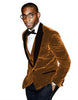 One Button Single Breasted Shawl Lapel Flap Two Front Pockets One Chest Pocket Four Button Cuff Color: Gold ~ Black