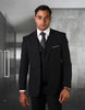 Mens 2 Button Classic Fit Pleated Pant Suit with Double Breasted Vest in Black