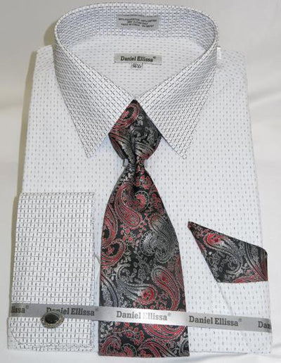 Men's French Cuff Dress Shirt 2 Tone Star Burst Pattern Solid Collar French Cuff Tie and matching Hankie combo Bold pattern Mens Fashion Dress Shir...