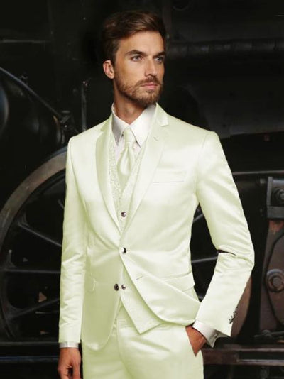 2 Button Notch Lapel Single Breasted Slim Fit One Chest Pocket Two Flap Front Pocket Color: Ivory