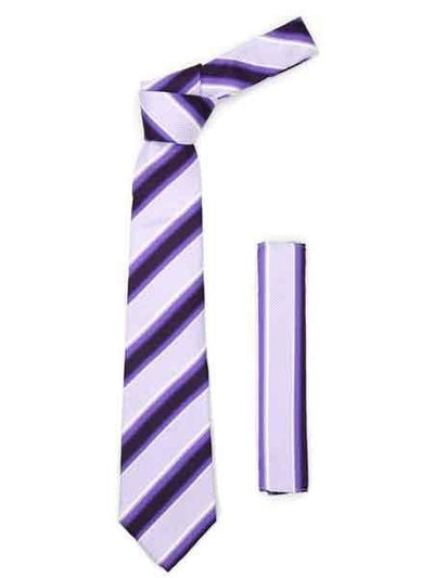 Microfiber Fabric Striped Necktie Hankie Set Fashionable And Trendy Color: Lavender Men's Neck Ties - Mens Dress Tie - Trendy Mens Ties SKU#SM1082